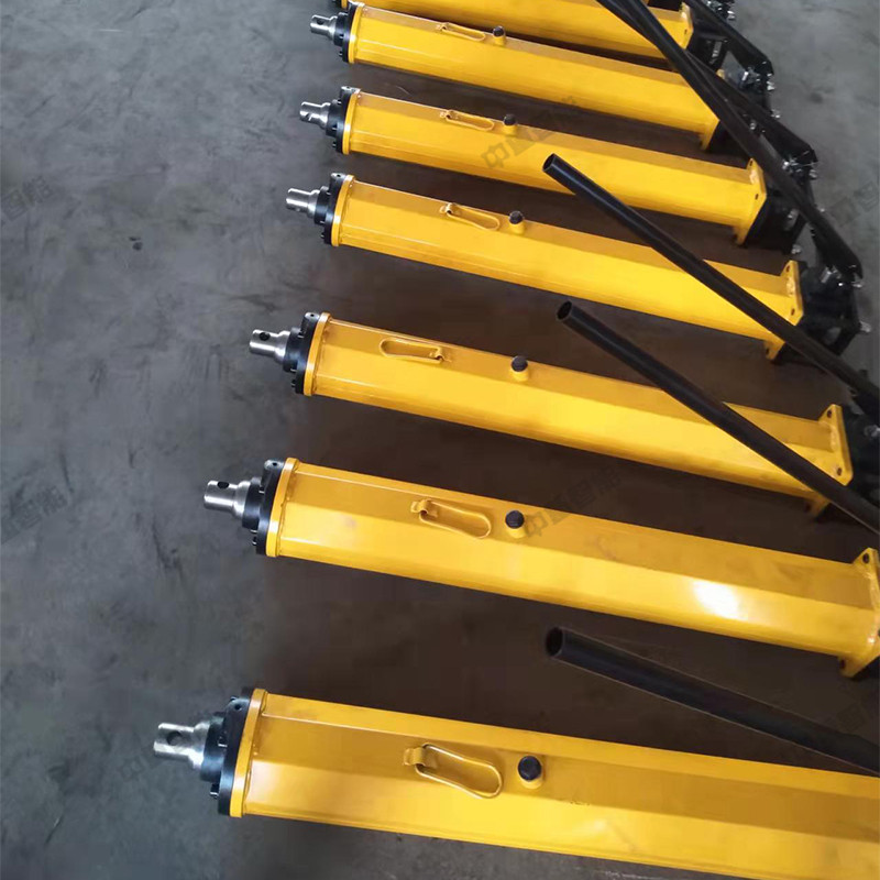 液壓推溜器,是為滿足煤礦炮采、普采工作面的需要而設(shè)計(jì)的手動(dòng)移溜器具。與其它移溜器械相比,具有適應(yīng)性強(qiáng)、機(jī)動(dòng)性好、操作省力、工效高、易維修、安全可靠,比集中供油的液壓千斤頂移溜可大量節(jié)省投資,經(jīng)濟(jì)上合算。 YT4-6A、YT4-8A液壓移溜器結(jié)構(gòu)為缸體外壁的前部和后部同向分別固定裝有前液壓閥和后液壓閥,在兩閥之間的缸體外壁相對(duì)的兩側(cè)固定裝有定位軸;缸體通過(guò)定位軸座落在固定座上的縱向長(zhǎng)孔內(nèi);固定座的底部固定裝有底板,底板靠近活塞桿一端向上翹起;固定座的頂部固定裝有嗆頂座,嗆頂座上部的槽形結(jié)構(gòu)向后傾斜,并與水平面成20°-24°夾角。本實(shí)用新型設(shè)計(jì)合理,液壓注液槍注液與缸體分離,推溜器移動(dòng)方便,缸體兩端可調(diào);活塞桿可與擋煤板連接時(shí)正常接觸,延長(zhǎng)設(shè)備使用壽命。